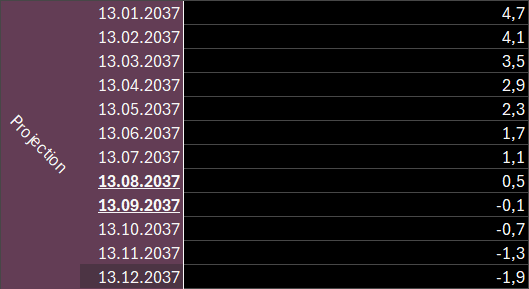 Within the next 12 months we go from 0.03 AUs in January to almost 1 AU by the time my 5th HRTiversary rolls around, to over 2.4 times the distance between Earth and Sun by June, only to finally approach 1k AUs by December 2030.