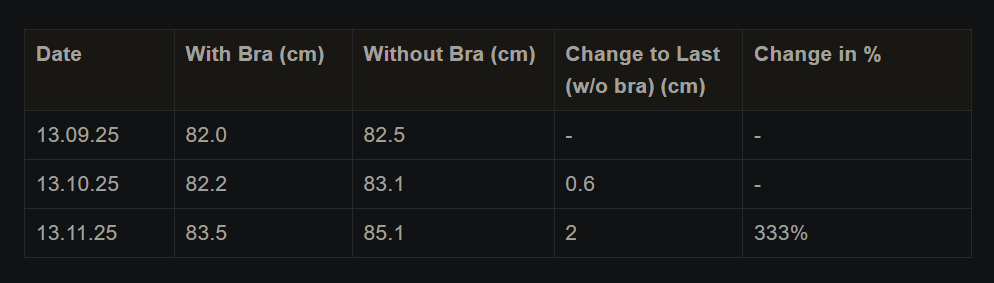 However, only 4 years later it gets interesting when the chest circ reaches 0 in late August, when the head will be free-floating above the body, for a brief time before either space-time itself becomes non-Euclidean and folds away, or a growing anti-matter anti-chest is forming, as the circumference reaches negative numbers. Which scenario is more likely to occur is an area of ongoing research.